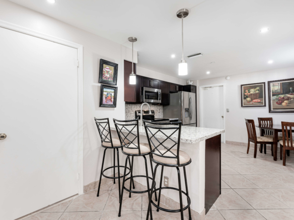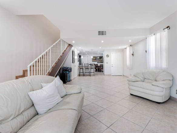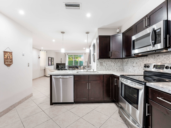 “Beautiful 3 bedrooms and 2 1/2 bathrooms in the desirable area of Weston. This unit is in a gated community. Tile floors on the first and second floors. Wood stairs and bedroom floors. Bedrooms and full bathrooms on the second floor and 1/2 bath on the first floor. The kitchen has a granite countertop, stainless steel appliances, and wood cabinetry. Red LG brand Washer and dryer. Wainscoting in the eat-in kitchen with window for added brightness & breakfast bar. Glass and iron front door for added security, screened & tiled private patio. 2 extra parking spaces next to the driveway and additional guest parking. Easy access to the community pool, highways, supermarkets and 13 minutes from the Sawgrass Mall for all your shopping needs.”