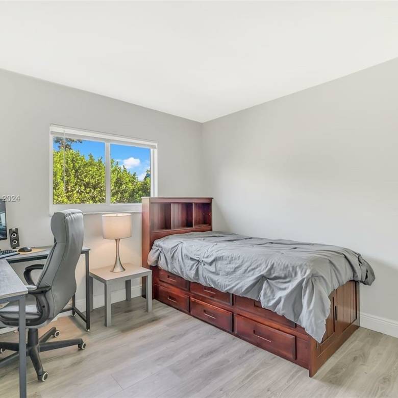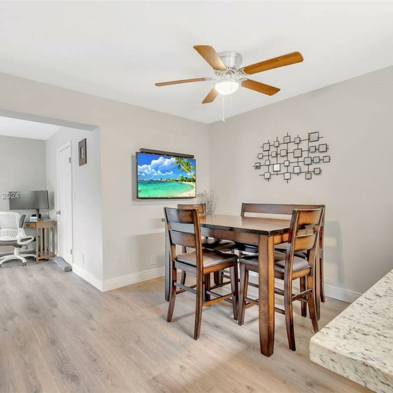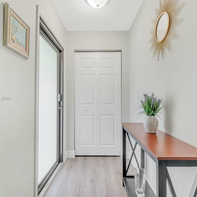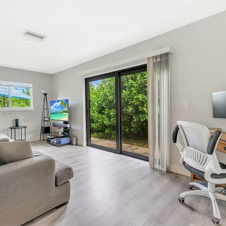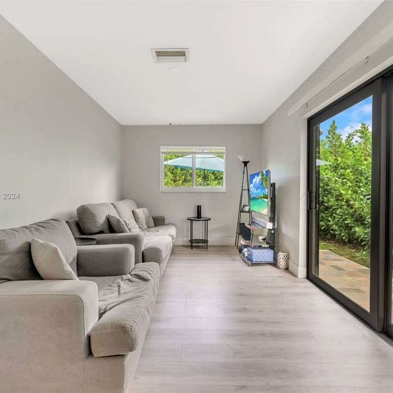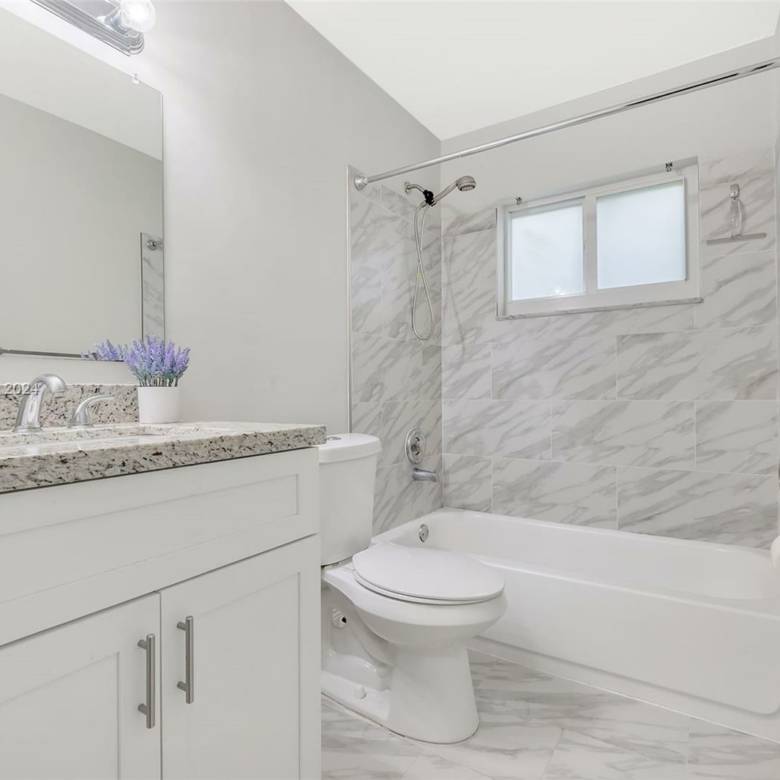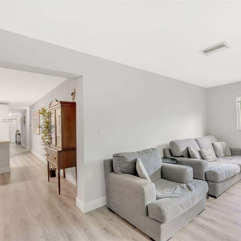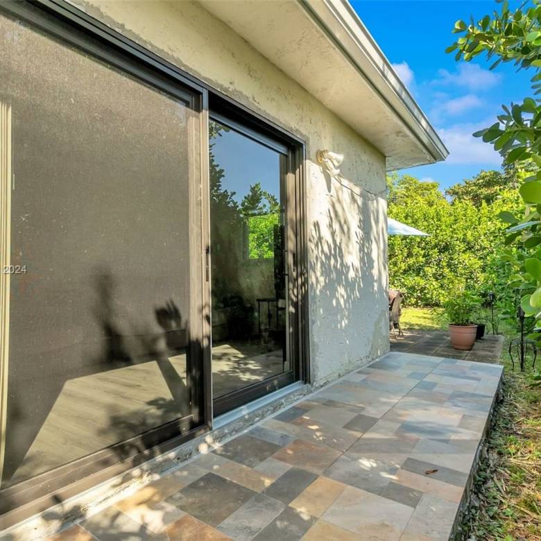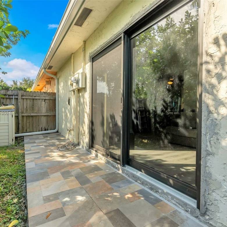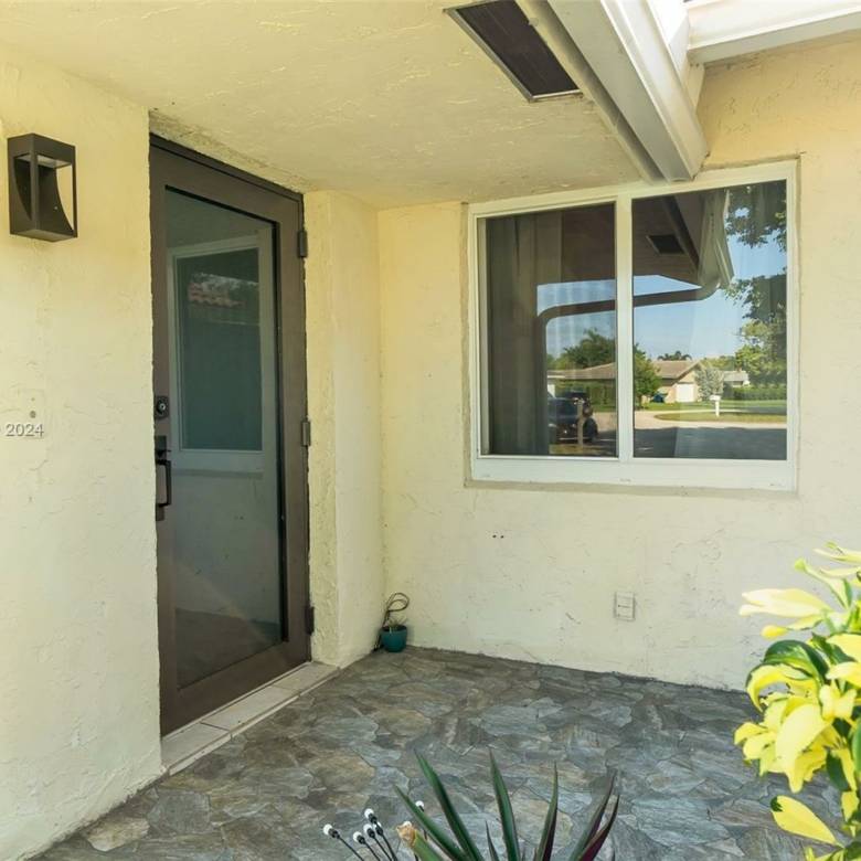 This renovated half-duplex in Coral Springs features 3 bedrooms, 2 bathrooms, and a spacious driveway for up to 4 cars, plus a lovely garden patio. Situated in a quiet cul-de-sac, the home boasts a modern kitchen with granite countertops, white cabinets with glass fronts, and stainless steel appliances. Both bathrooms are updated with granite and ceramic tile finishes; the master bath includes a walk-in shower, while the guest bath offers a tub/shower combo. A bonus room at the back provides extra space for an office, playroom, or gym. There’s also a convenient laundry room. The expansive, pie-shaped backyard offers plenty of room for a pool. Ideally located near shops, restaurants, and all that Coral Springs has to offer—plus, no HOA!