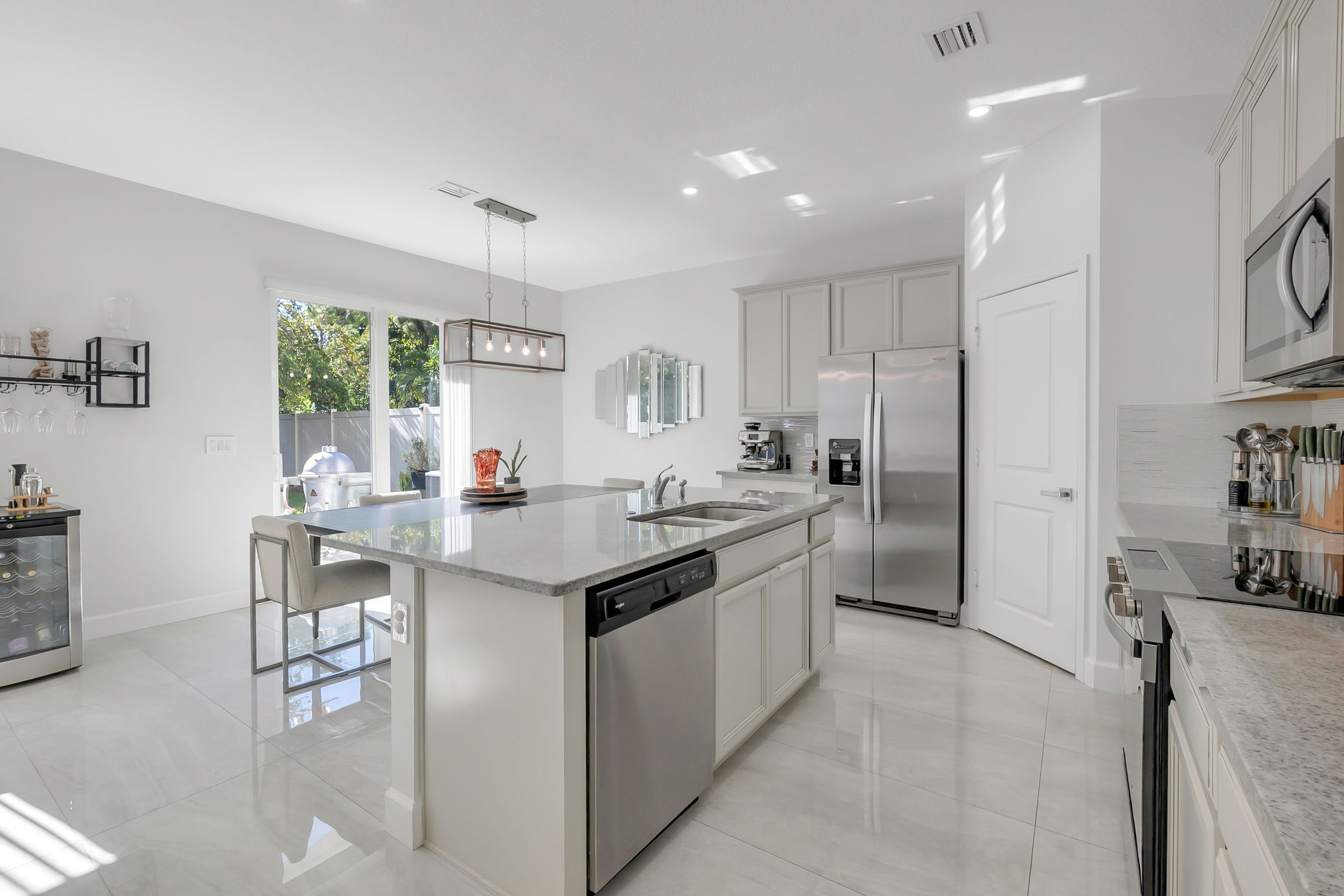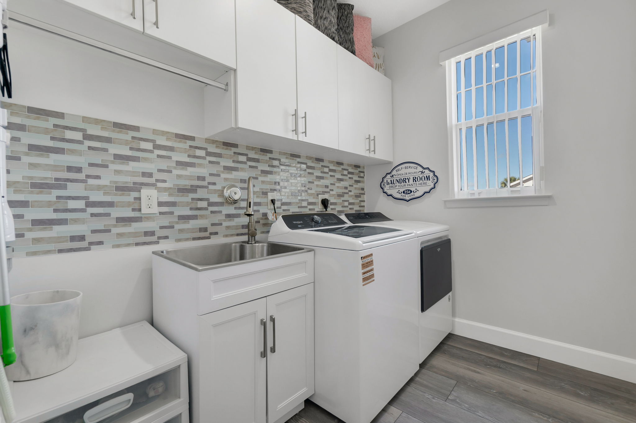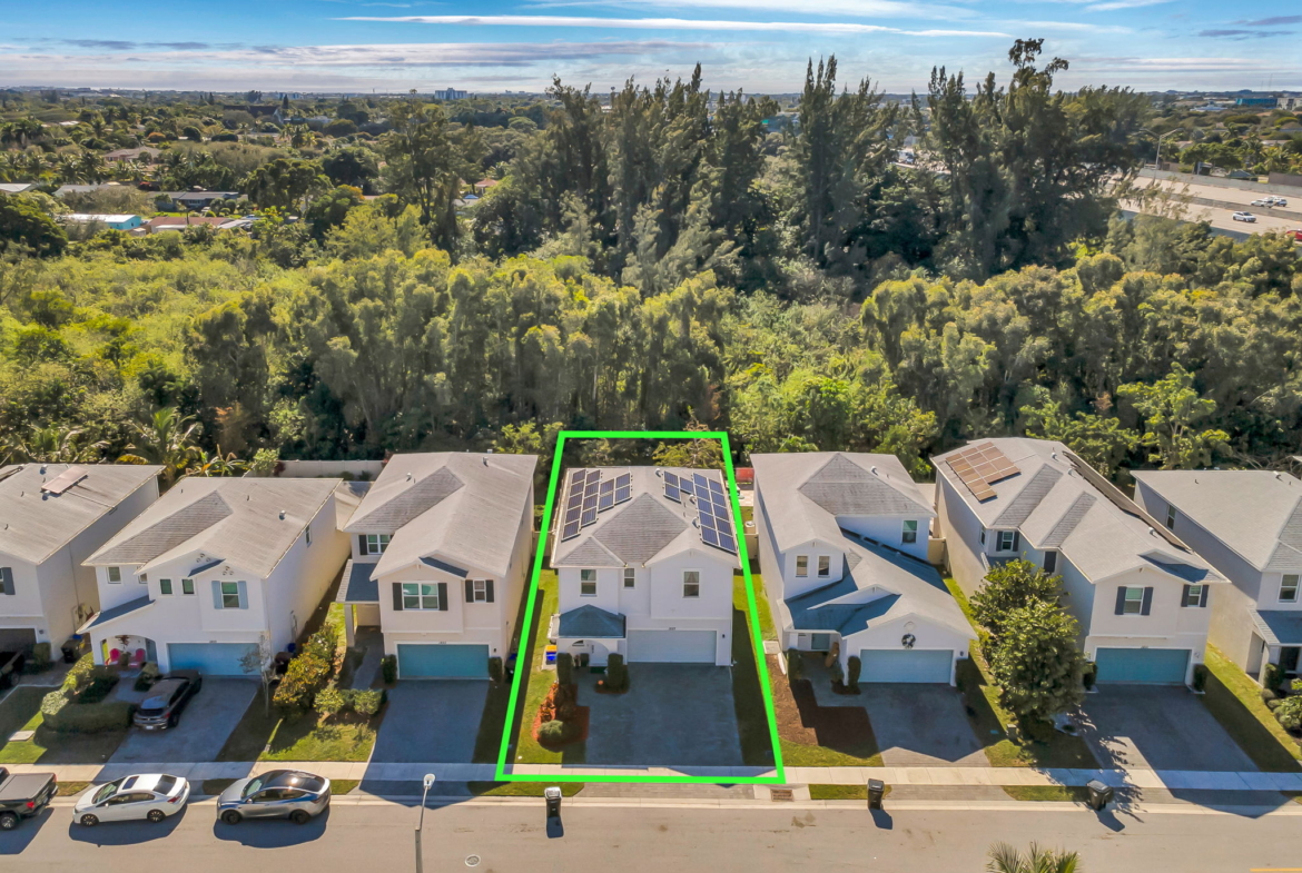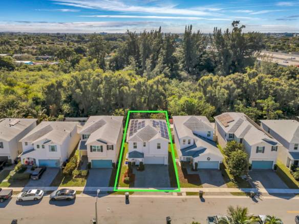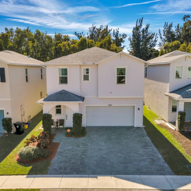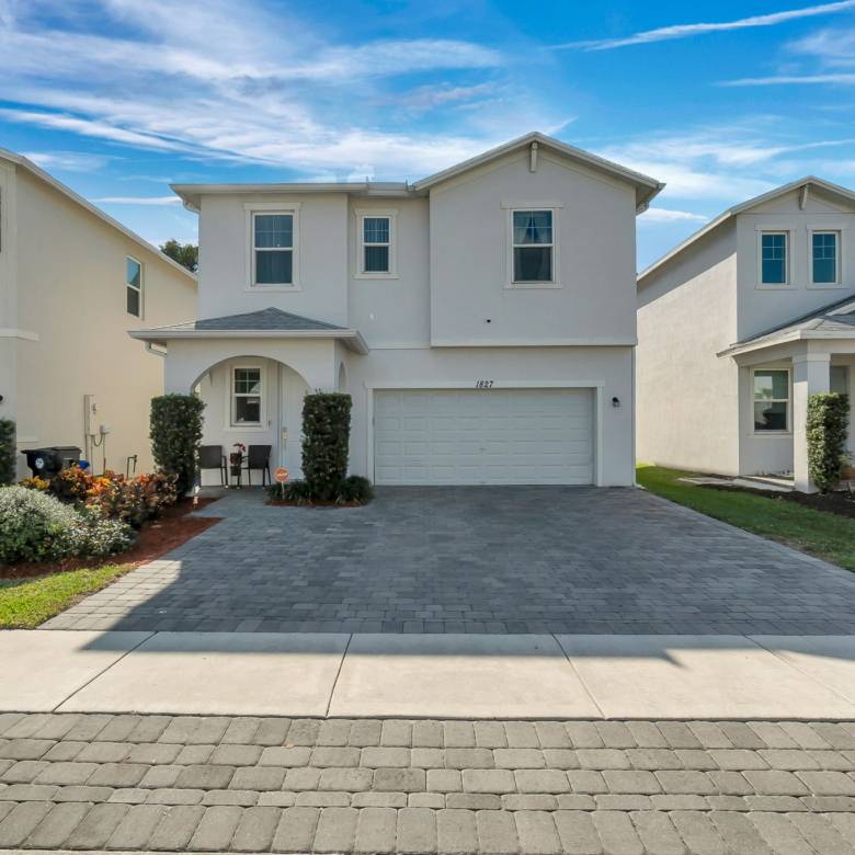 Welcome to this beautiful two story single family home in Lake Worth, built in 2020 and offering modern comfort in a prime location. This spacious three bedroom, two and a half bathroom residence features beautiful porcelain floors downstairs and vinyl flooring upstairs. The open concept kitchen includes stainless steel appliances, granite countertops, and a stunning backsplash, perfect for everyday living and entertaining. The primary bedroom offers custom closets, and a dedicated laundry room is conveniently located upstairs with a brand new washer just installed and a utility sink for added convenience. Enjoy a spacious backyard ideal for relaxing or outdoor gatherings, along with the convenience of a two car garage. Impact windows provide added peace of mind. The home is pet friendly and ideally situated just two miles from Bryant Park Marina, three and a half miles from the beach, and five miles from downtown West Palm Beach, with parks, shopping, and dining nearby.