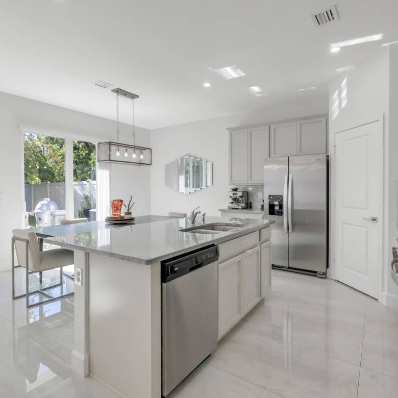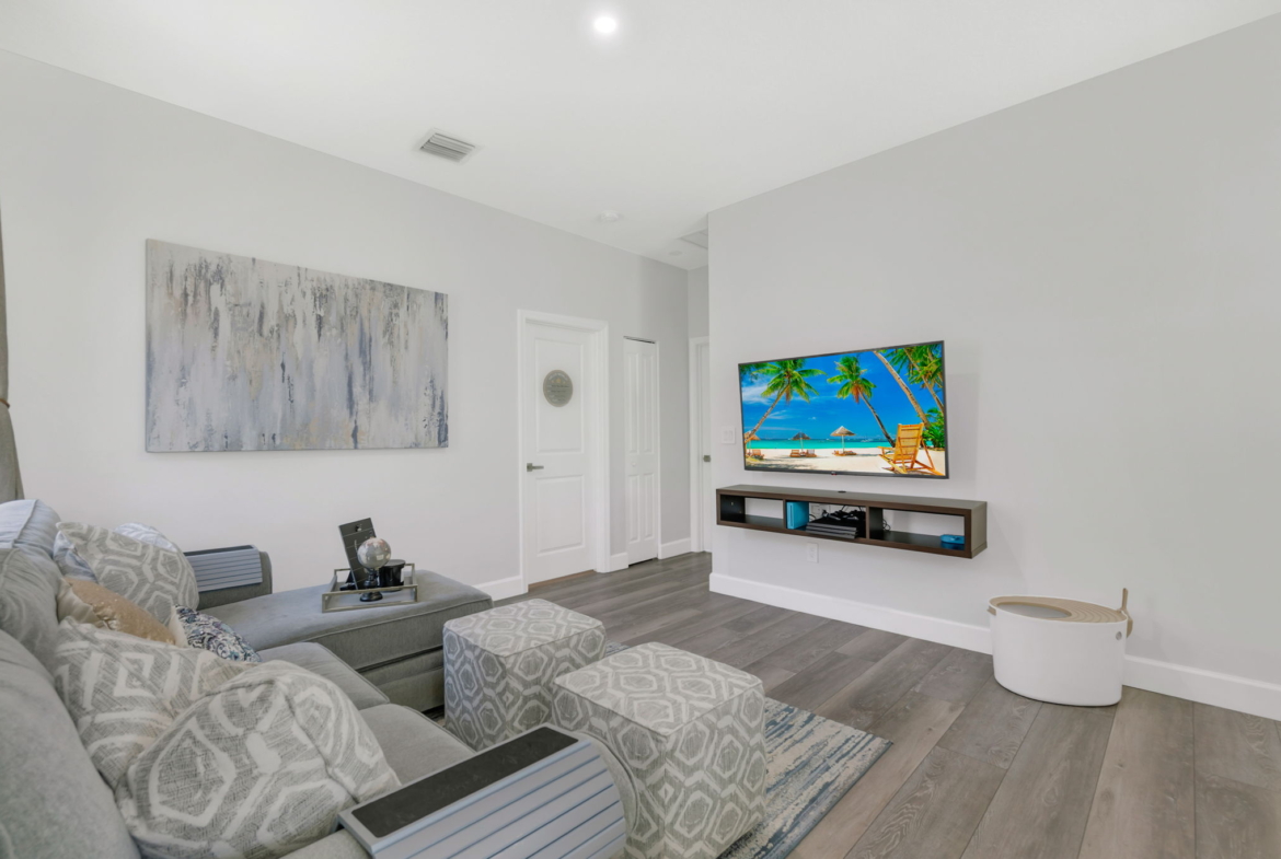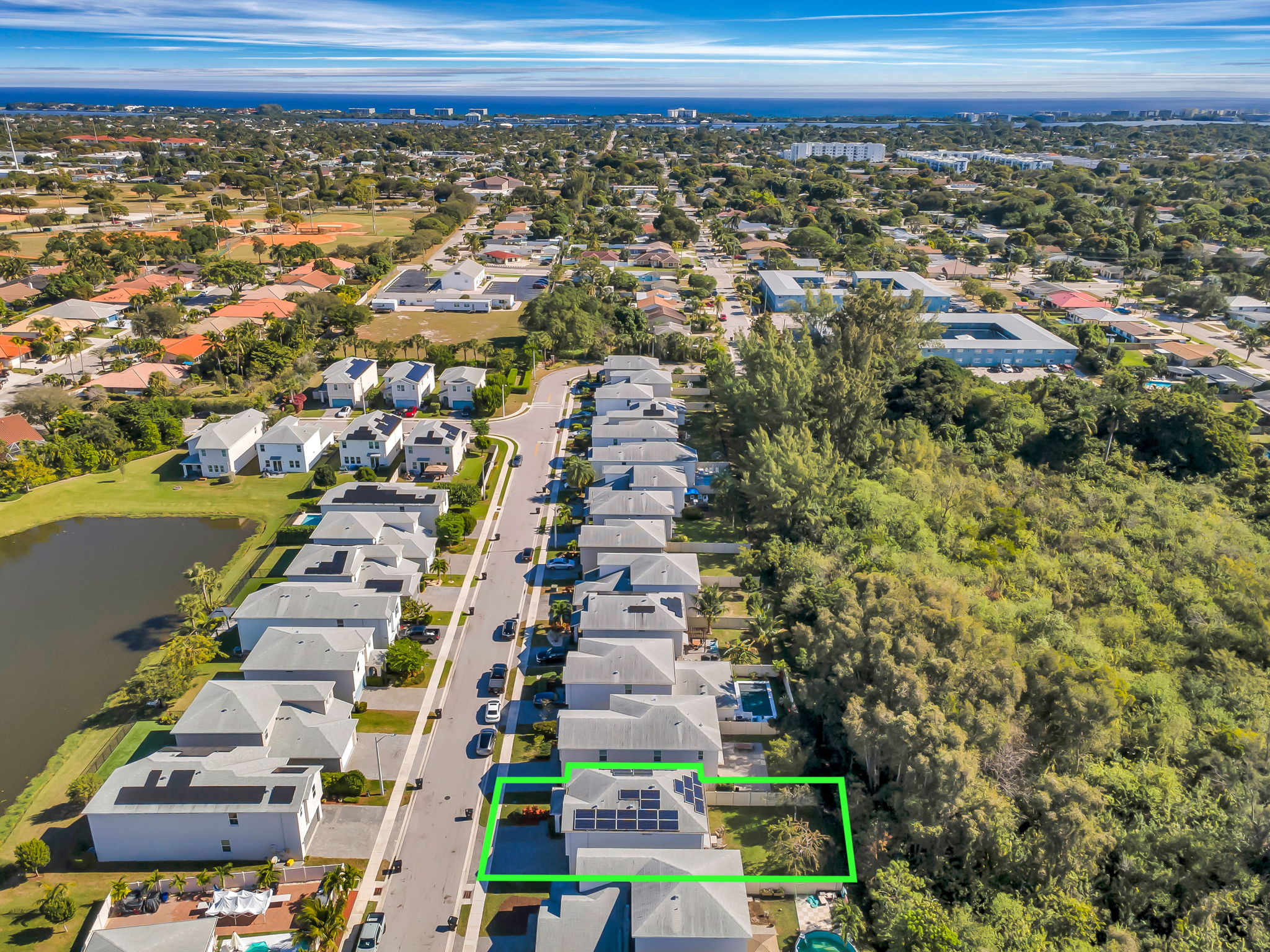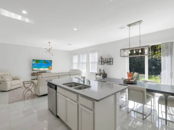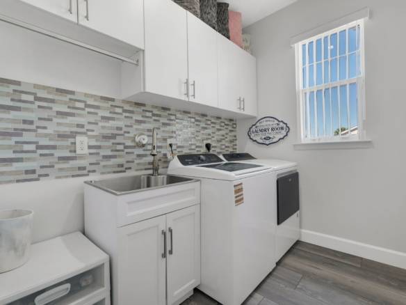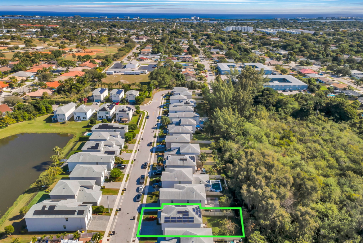 Welcome to this beautiful two story single family home in Lake Worth, built in 2020 and offering modern comfort in a prime location. This spacious three bedroom, two and a half bathroom residence features beautiful porcelain floors downstairs and vinyl flooring upstairs. The open concept kitchen includes stainless steel appliances, granite countertops, and a stunning backsplash, perfect for everyday living and entertaining. The primary bedroom offers custom closets, and a dedicated laundry room is conveniently located upstairs with a brand new washer just installed and a utility sink for added convenience. Enjoy a spacious backyard ideal for relaxing or outdoor gatherings, along with the convenience of a two car garage. Impact windows provide added peace of mind. The home is pet friendly and ideally situated just two miles from Bryant Park Marina, three and a half miles from the beach, and five miles from downtown West Palm Beach, with parks, shopping, and dining nearby.