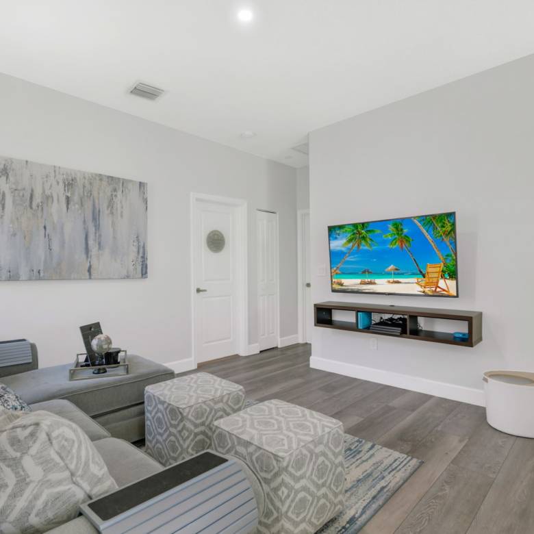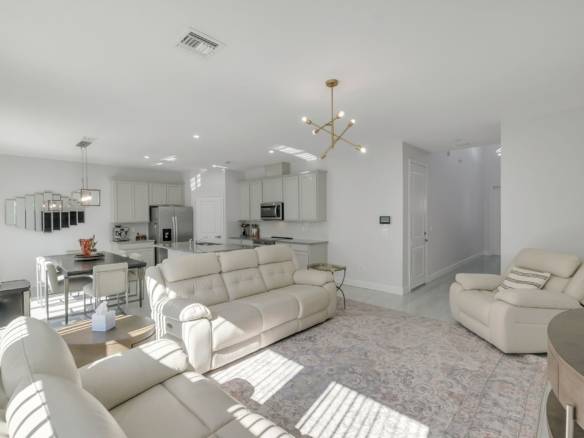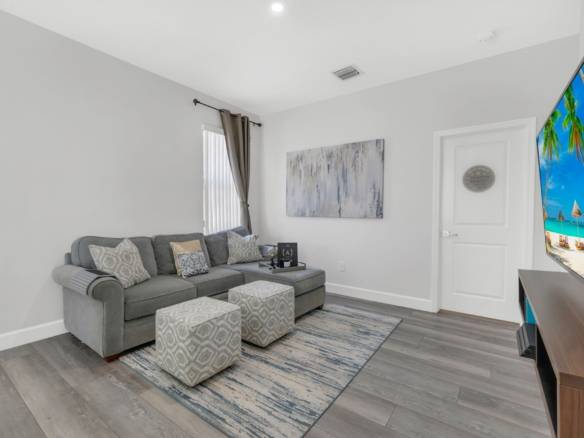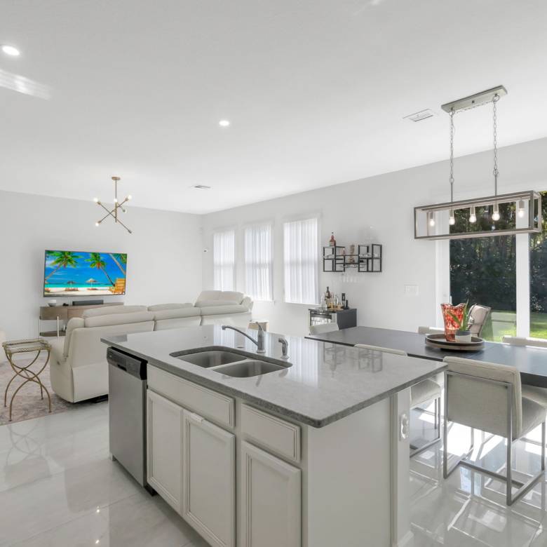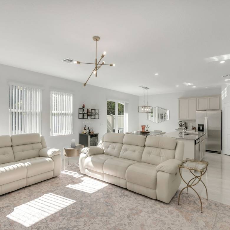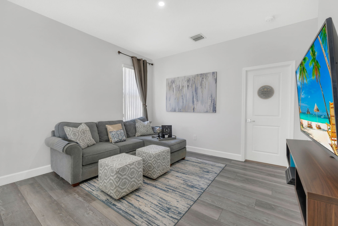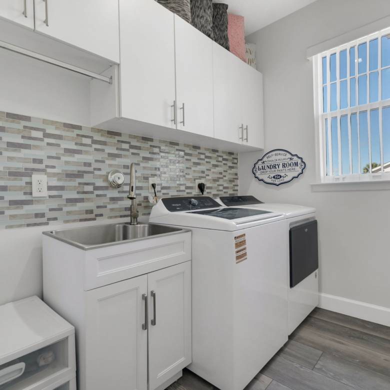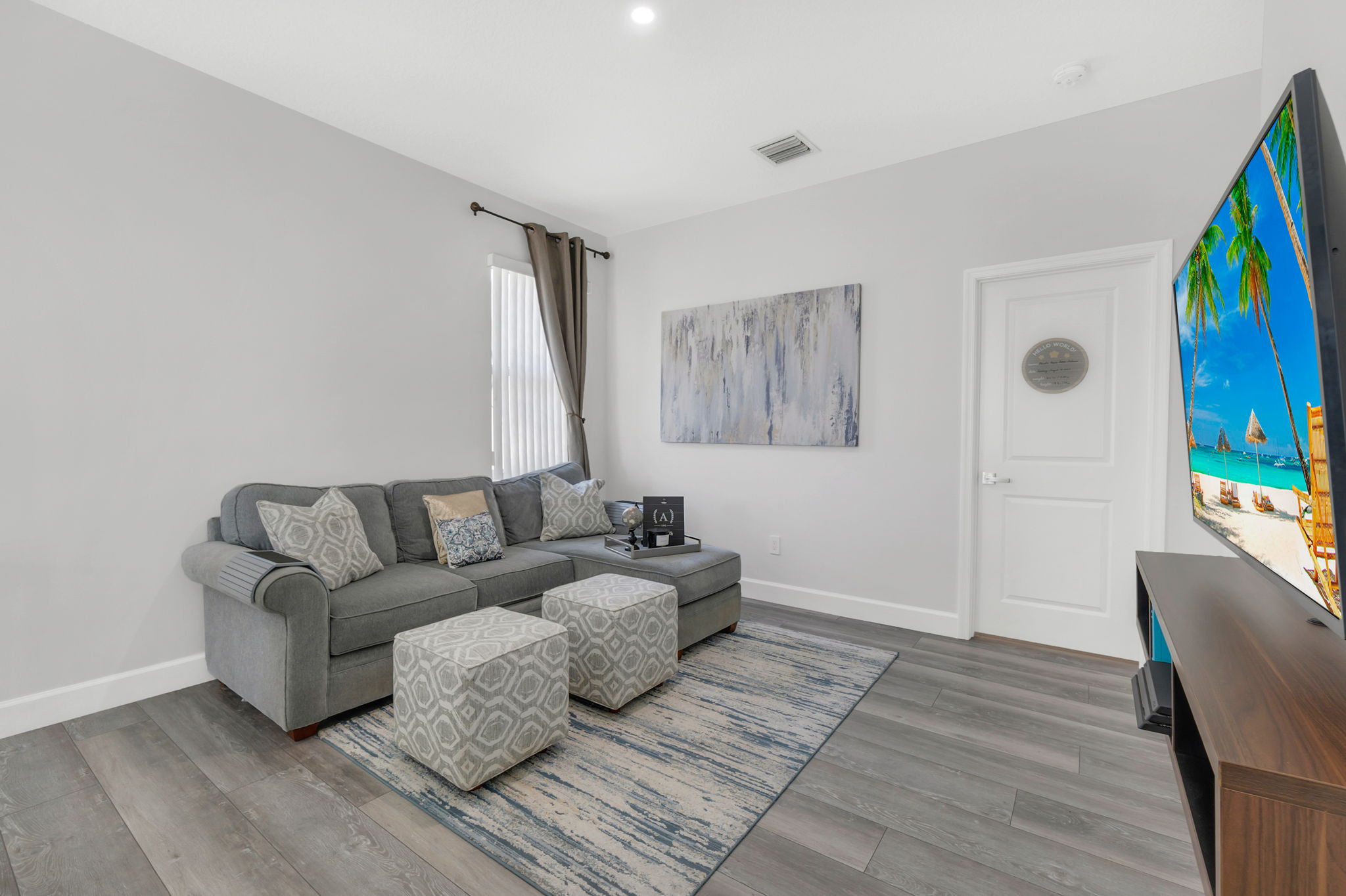 Welcome to this beautiful two story single family home in Lake Worth, built in 2020 and offering modern comfort in a prime location. This spacious three bedroom, two and a half bathroom residence features beautiful porcelain floors downstairs and vinyl flooring upstairs. The open concept kitchen includes stainless steel appliances, granite countertops, and a stunning backsplash, perfect for everyday living and entertaining. The primary bedroom offers custom closets, and a dedicated laundry room is conveniently located upstairs with a brand new washer just installed and a utility sink for added convenience. Enjoy a spacious backyard ideal for relaxing or outdoor gatherings, along with the convenience of a two car garage. Impact windows provide added peace of mind. The home is pet friendly and ideally situated just two miles from Bryant Park Marina, three and a half miles from the beach, and five miles from downtown West Palm Beach, with parks, shopping, and dining nearby.