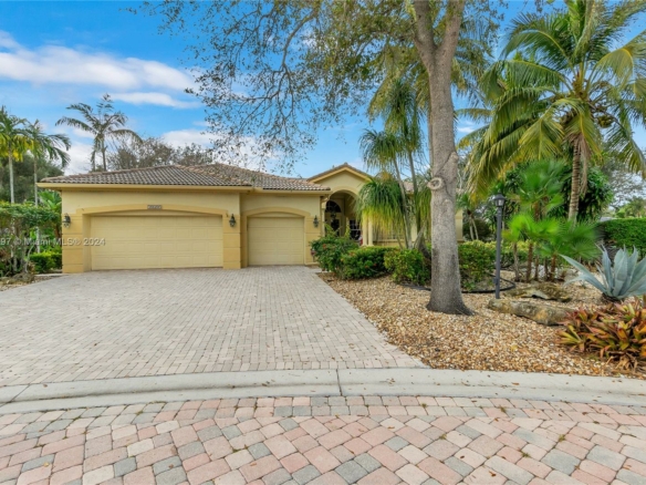 Desirable 3 bedrooms plus den and 2 and a half bathrooms home in the gated community “The Colony” with a spacious split floor plan. Nice L-Shaped granite countertop kitchen, just 2 years old stainless-steel appliances, and brown wood cabinets. Large master suite with his and hers closet. The large master bathroom was also updated 2 years ago featuring tile wood floors, a granite countertop, a beautiful backsplash, and a roman tub. Laundry room with newer washer and dryer and utility sink. Tile floors throughout the house except for the bedrooms and den which feature laminate floors. Sliding doors and accordion hurricane shutters for all windows, 2-car garage, and pavers driveway. The community features a clubhouse, pool, exercise room, basketball court, and playground.