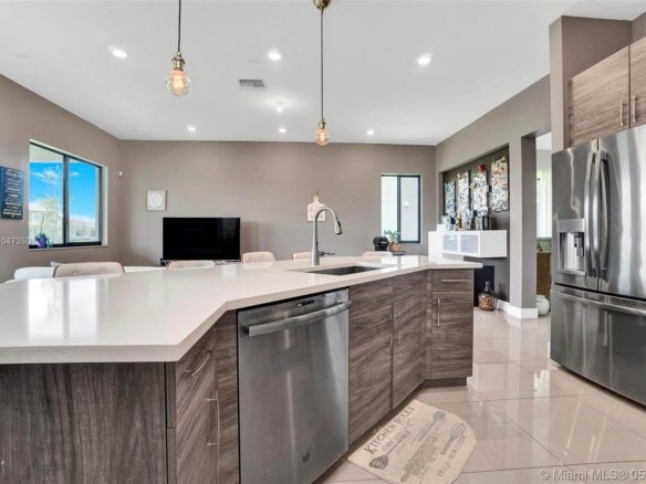 As the name suggests, the Bonita model is a beautiful 1-story home with 4 bedrooms, 3 bathrooms, a 2 car garage, and impact windows. Step into a long, elegant foyer leading to the combined living and dining room. The master bedroom has a beautiful view of the lake and features two walk-in closets. Bedroom 2 can be accessed from the living room and features its own bath. Meanwhile, bedrooms 3 and 4 shares a bathroom with a tub and enjoy an entrance from the foyer. Updated kitchen featuring quartz countertop, stainless steel appliances, gas stove, a beautiful oversized island, and breakfast area. Step out into the covered terrace and enjoy the sunsets overlooking the lake. Located in Cascata with two clubhouses, pools, tennis courts, indoor and outdoor basketball courts, and much more.