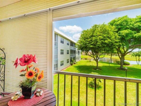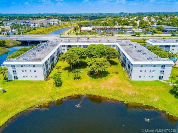 Beautiful 2 bedrooms and 2 bathroom adult community condo with a gorgeous view of the lake. The corner unit is conveniently located right next to the elevator. Open kitchen and laminate floors throughout. Sit on the spacious balcony and sip coffee as you enjoy the view of the lake. Nice updated bathrooms. Walk-in closet in the main bedroom and plenty of closets thought out the home. The well-managed association offers a newly built pool and very low HOA dues. Great location close to shops and restaurants.