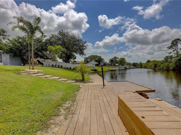 Fully remodeled ocean access home with a gorgeous view of the Saint Lucie River. This wonderful 3 bedroom and 2 bath home is a boater’s dream. Ocean access is just 40 min. by boat with only 2 fixed bridges. There is a brand new 64ft deck. Gorgeous new white 32×32 porcelain floors throughout the house. The kitchen features granite countertops & stainless steel appliances. The bathrooms have tiles on the floors/shower and granite countertops. Smooth ceiling with recessive lights. A brand new sprinkler system that can be controlled by phone that pulls the water either from the lake or the brand new well pump system. New water heater, smart washer, and dryer. Garage door system that can also be controlled by phone and epoxy floors. Oversized lot .34 acres with fruit trees, and includes shed.