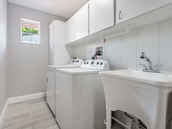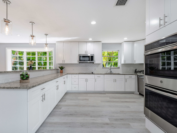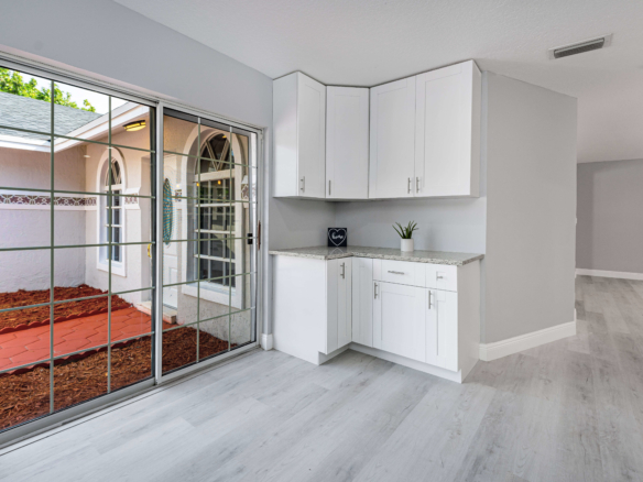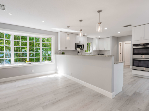 Spacious renovated 4 bedrooms and 4 bathrooms ranch style home. The just remodeled kitchen features granite countertops, subway tiles backsplash, wood cabinetry, double oven, and stainless steel appliances. Engineering wood plank throughout the home, brand new roof, new AC, and washer and dryer. The home has two driveways, one in the front and the other on the back of the home offering plenty of parking space. Extended back with a game room and one of the bedrooms suites perfect for guests or the in-laws. Huge shed in the backyard for extra storage. In the heart of Boca Raton close to FAU, shops, restaurants, and major highways. No HOA.