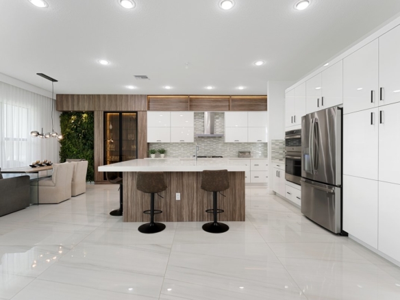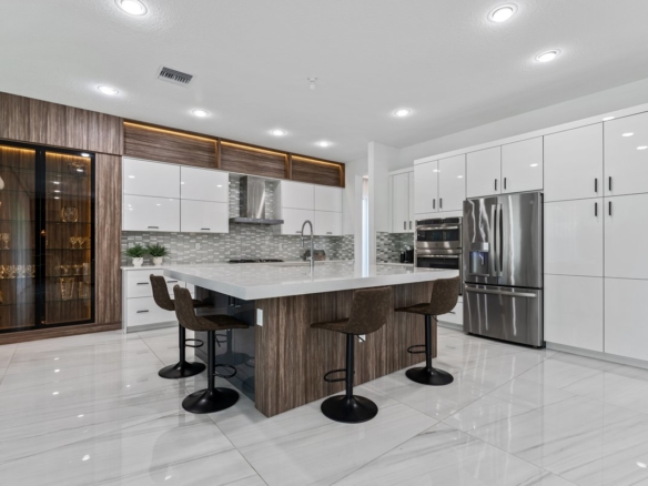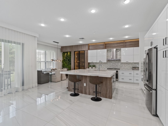 Gorgeous corner 5 bedrooms and 7 baths Polynesia Model located at Boca’s newest contemporary community of Lotus. This professionally designed home offers so many upgrades from a gorgeous modern kitchen including an oversized quartz island, gas stove, double oven, upgraded modern kitchen cabinets, professional design woodwork surrounding the kitchen cabinets, and a beautiful vertical garden, to the gorgeous custom carpentry in the TV room. The formal living room was converted into a more useful entertaining room with a pool table, a custom carpentry wall with LED lights, and a phenomenal glass wine room under the stairs. Upgraded porcelain floors, impact windows, and upgraded glass staircase. Fenced backyard with plenty of space for a pool. Resort-style amenities and rated A schools.