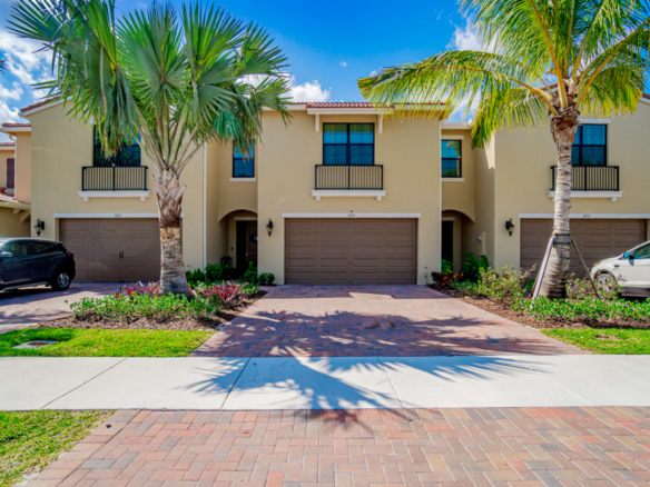 Luxury golf course view, just built-in 2021, townhome located in Boca Raton. Featuring 3 bedrooms, 2.5 bathrooms, and a 2-car garage with a 4-car driveway. This townhouse feels like a single-family home, with a spacious 2131SF under air. Gorgeous kitchen with modern grey cabinets, stainless steel appliances, and an oversized island with bar seating. Large Dining and Living areas with access to covered Lanai. The beautiful owner’s suite offers dual walk-in closets, a large owner’s spa bath & a double sink. Offering the latest technology with Ecobee Thermostat, Arlo Cameras, and smart lock. Custom light fixtures through the house and double curtains. The laundry room is conveniently located on the 2nd-floor. Hurricane-proof windows. Amenities include clubhouse, fitness center, pool & Spa.