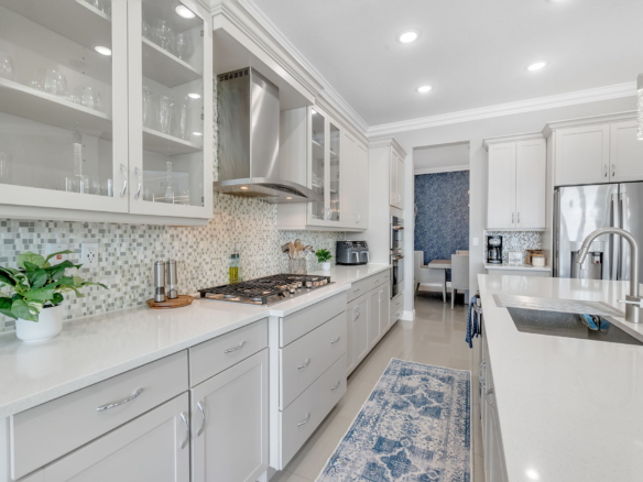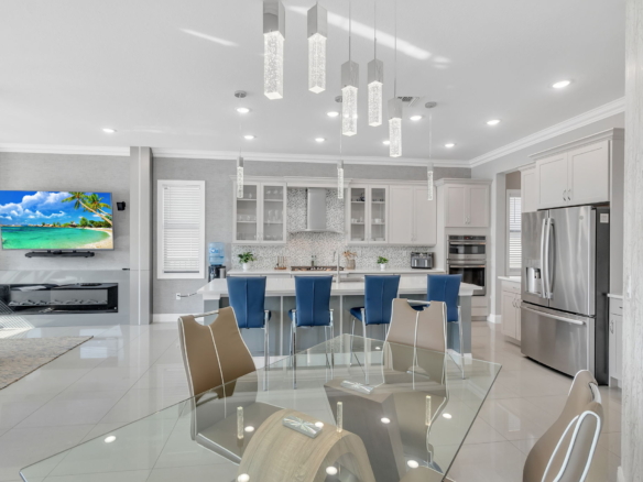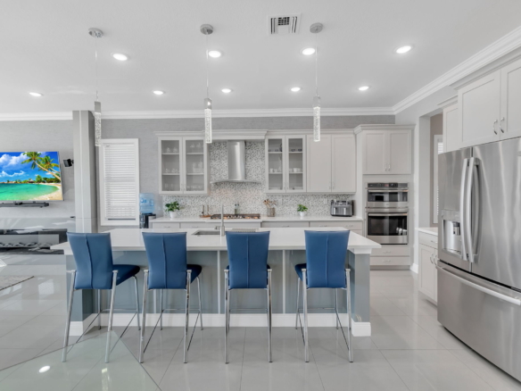 Experience refined living in this stunning 5-bedroom, 4-bath home in the prestigious gated community of Parkland Bay. Built in 2019 by WCI and freshly painted, this home features a chef’s kitchen with quartz countertops, upgraded glass-front cabinetry, double ovens, and a gas cooktop—all set on elegant ceramic tile flooring. Enjoy sunset views from your private saltwater pool with a 2024-built outdoor kitchen featuring granite countertops and a travertine deck. The home boasts engineered hardwood floors upstairs and a stainless steel stair railing that elevates the interior. Additional features include impact windows, a 3-car garage, and upgrades throughout. Resort-style amenities: clubhouse, pool, gym, tennis & basketball courts. A-rated schools. HOA includes lawn care and irrigation.