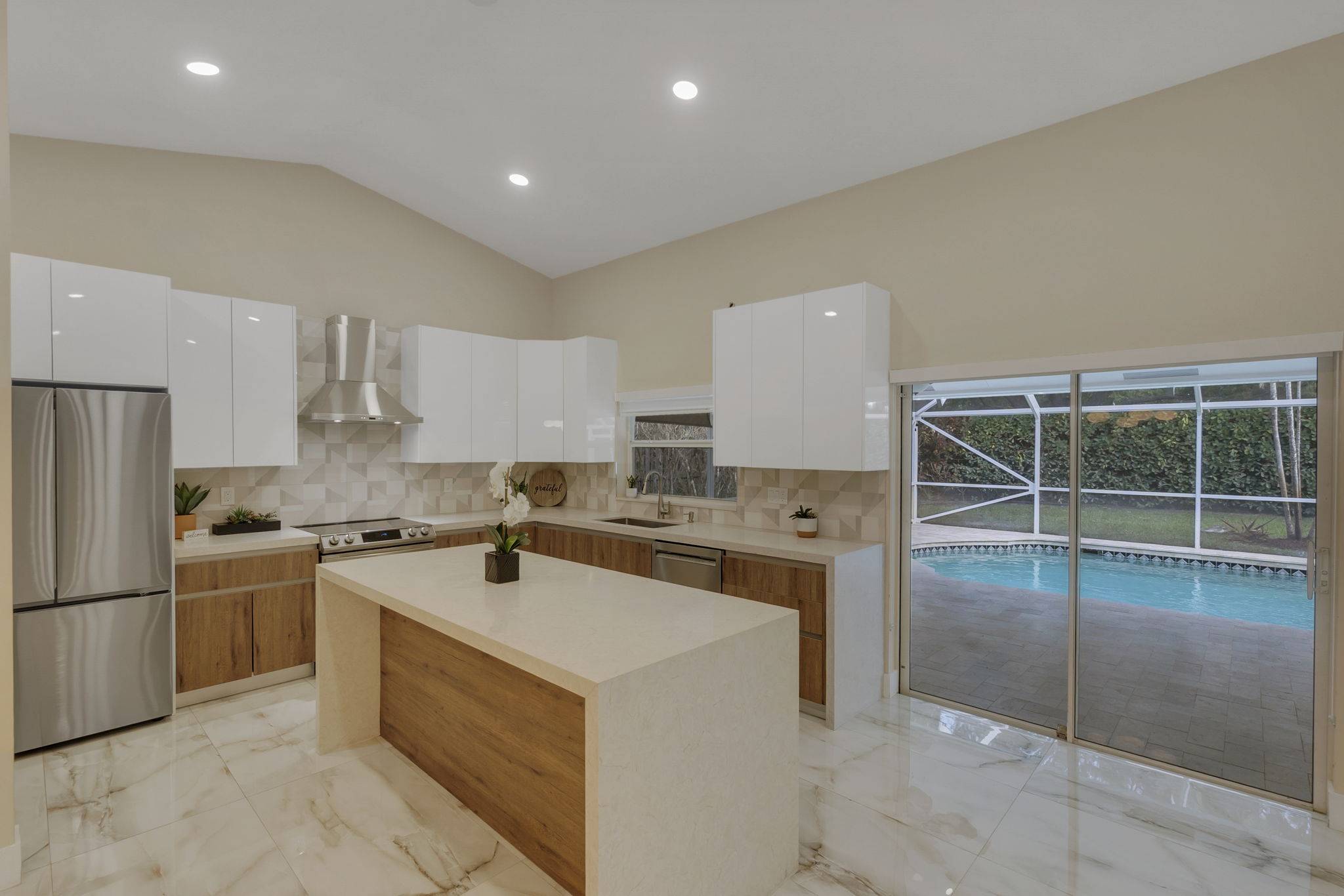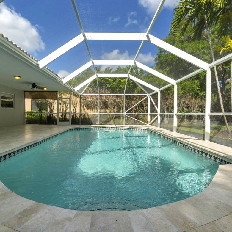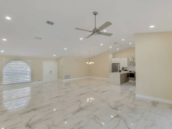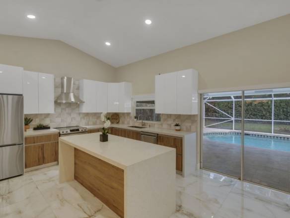Gorgeous 4-bedroom, 2-bathroom pool home in the desirable Brookside neighborhood of Coral Springs. This home features an open floor plan with high ceilings and abundant natural light throughout. The modern kitchen is perfect for entertaining, offering an oversized island, quartz countertops, and stainless steel appliances. Both bathrooms have been updated with granite countertops and stylish tile finishes. Step outside to a private backyard with lush landscaping and a screened pool, complete with a baby fence for added safety, creating the perfect space to relax or entertain. The pool area also features brand-new travertine. A circular driveway provides ample parking, and the home includes an EV charger plug in the garage. Rent includes lawn and pool maintenance. The back doors will be replaced with impact doors, and the cabana bathroom door will be upgraded to a beautiful glass door to bring in more natural light. Conveniently located near shopping, dining, top-rated schools, and major highways, this home offers comfort, style, and convenience in one of Coral Springs’ most sought-after neighborhoods.