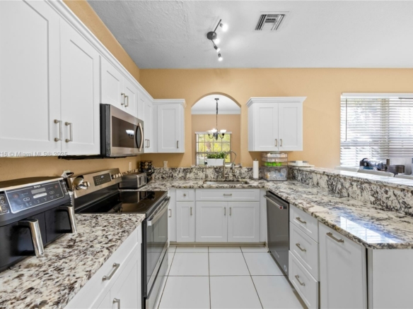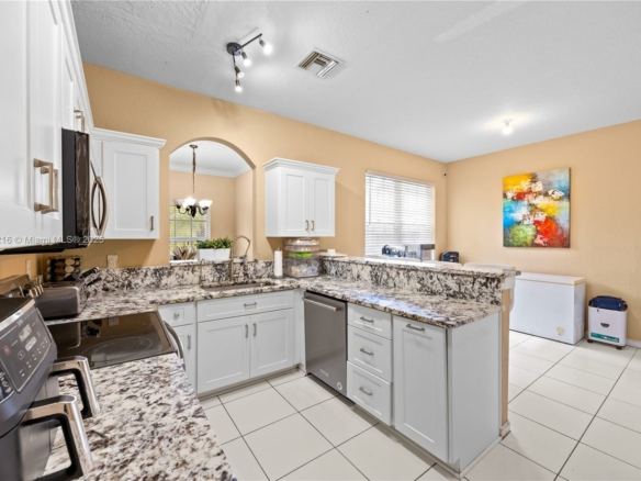 3-bedroom, 2.5-bathroom home, complete with an office/den and a 2-car garage, offers a perfect combination of comfort and modern upgrades. Key features include:Brand-new kitchen (2023) with Level 2 granite countertopsNew roof (2023)Updated appliances (2022)Wireless water heater(2024)Remodeled master bathroom (2024) with double sinks and a showerT he home boasts spacious tiled living areas downstairs, laminate flooring upstairs, and high ceilings that enhance its open and airy feel. The master bedroom includes a large walk-in closet, offering plenty of storage space.Located right next to North Community Park, it’s within walking distance of top-rated A+ elementary and high schools, making it an ideal choice .Upgraded home 200 AMP,TESLA CHARGING STATION PLUG FOR 2 CARS, HURRICANE SHUTTERS