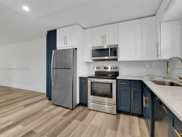 Modern 2-bedroom, 2-bathroom apartment features an open floor plan and new floors. The kitchen has been beautifully remodeled, showcasing stainless steel appliances, offering a generous workspace with white granite countertops, and incorporating shaker-style cabinets with maple interiors. You’ll find two fully renovated bathrooms that offer space and comfort. The master bathroom stands out with its two closets, one of which is a spacious walk-in, perfect for all your storage needs. The apartment is equipped with two full-size, brand-new washer and dryer units for added convenience. Situated in a prime spot, this apartment is just a stone’s throw away from a variety of shops, restaurants, parks, and worship centers. Rent Includes water, cable, and internet.