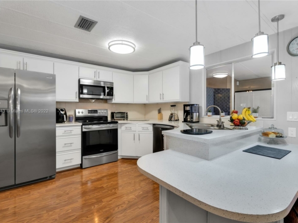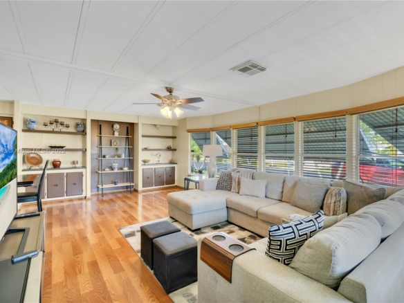 Nice 2 bedroom and 2 bathroom home located in the lovely 55+ gated community of Highland Meadows Estates East. It features an open-floor concept kitchen with just 4 yrs old stainless steel appliances. Spacious living room with plenty of natural light. Each bedroom has its own private bathroom. The house also has a den which has plenty of space for storage or can be used as an additional bedroom or office. The spacious backyard is the largest in the community, with a nice outdoor dining area. The price includes the land, the HOA fee is only $280/quarter.The community amenities include a pool, gym, game room, clubhouse, library, events, and activities. Close to the highway, restaurants, and parks.
