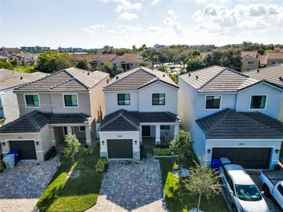 Nice 3 bedroom 2 bathroom home in the new community of Vantage of Palm Aire. The house is only a few years old with only one owner. This two-story single-family home features an open floor concept, tile floors on the downstairs, and carpet on the upstairs. The garage has been converted into an office for additional living space. Enjoy the view from the master bedroom balcony overlooking the lake—a spacious backyard with plenty of grass. Pets allowed. Close to shops, restaurants, the beach, and highways.