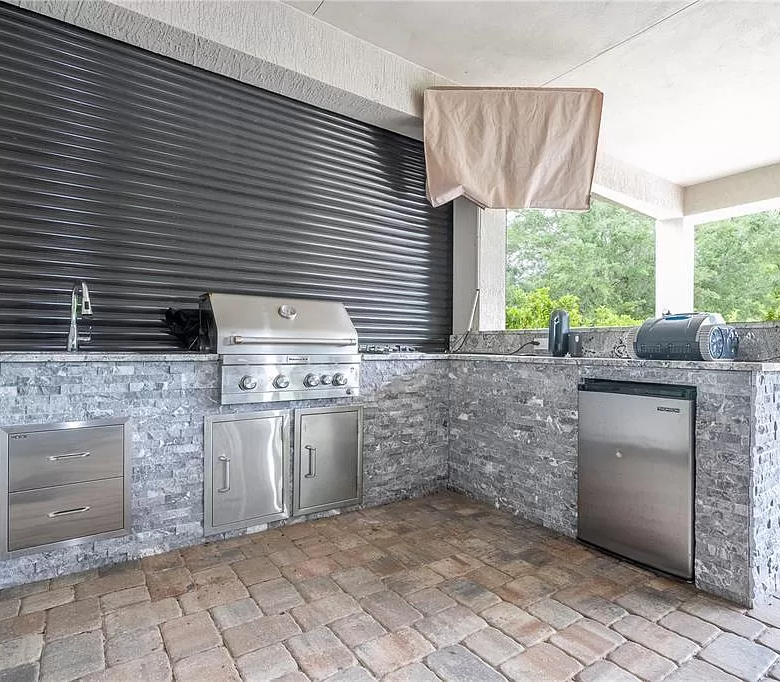 Every corner of this home exudes comfort and elegance, with impeccable finishes and spacious living areas. The inviting kitchen features two gorgeous marble countertops, creating a focal point flooded with sunlight. Step outside to discover a true outdoor oasis, complete with summer kitchen, pool and spa – all overlooking the tranquil conservation area, offering privacy and the calming sounds of birdsong.